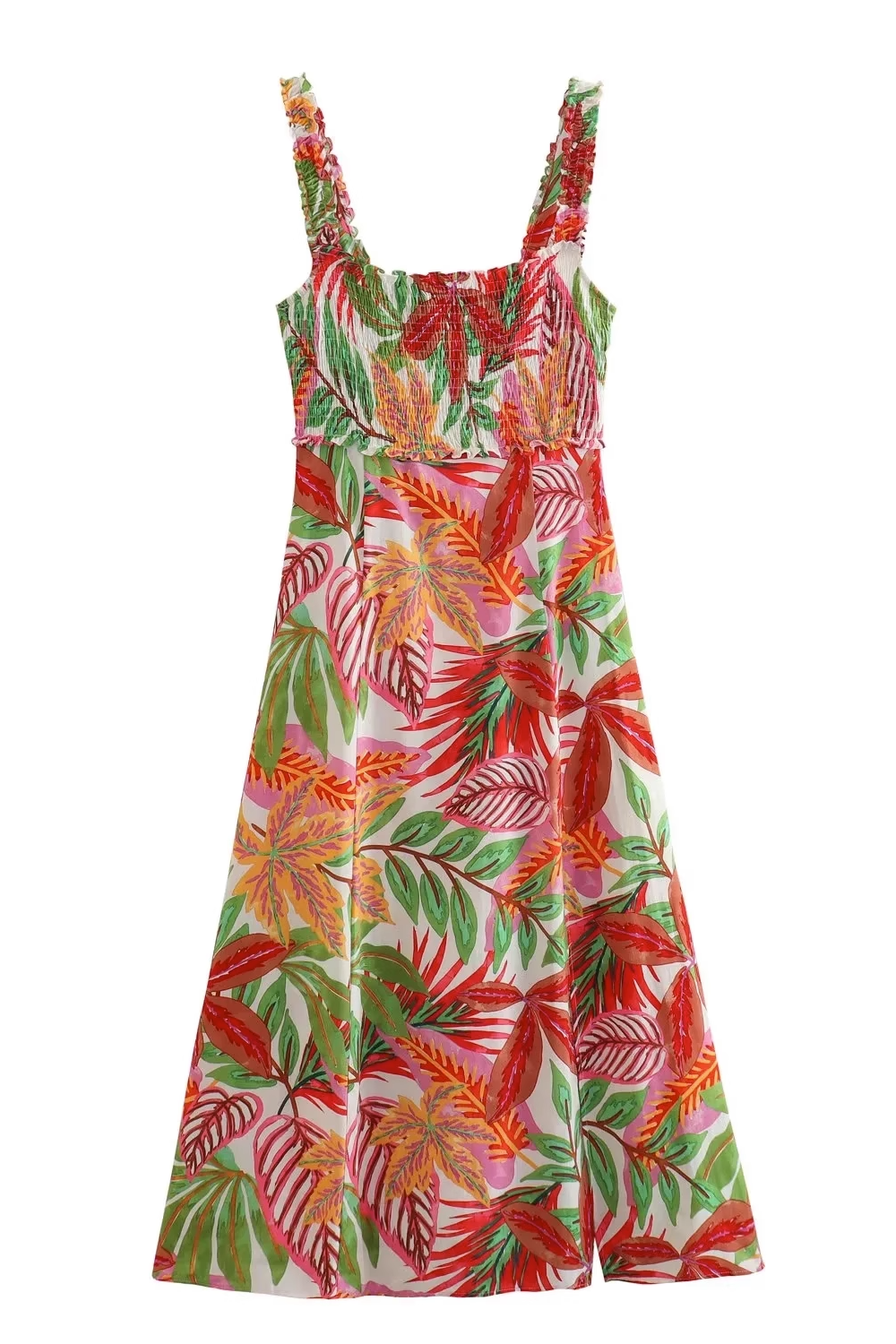 Goodnight Classicwhiteshirt ‘Sapphire’ Sleeveless Tropical Pattern Midi Dress