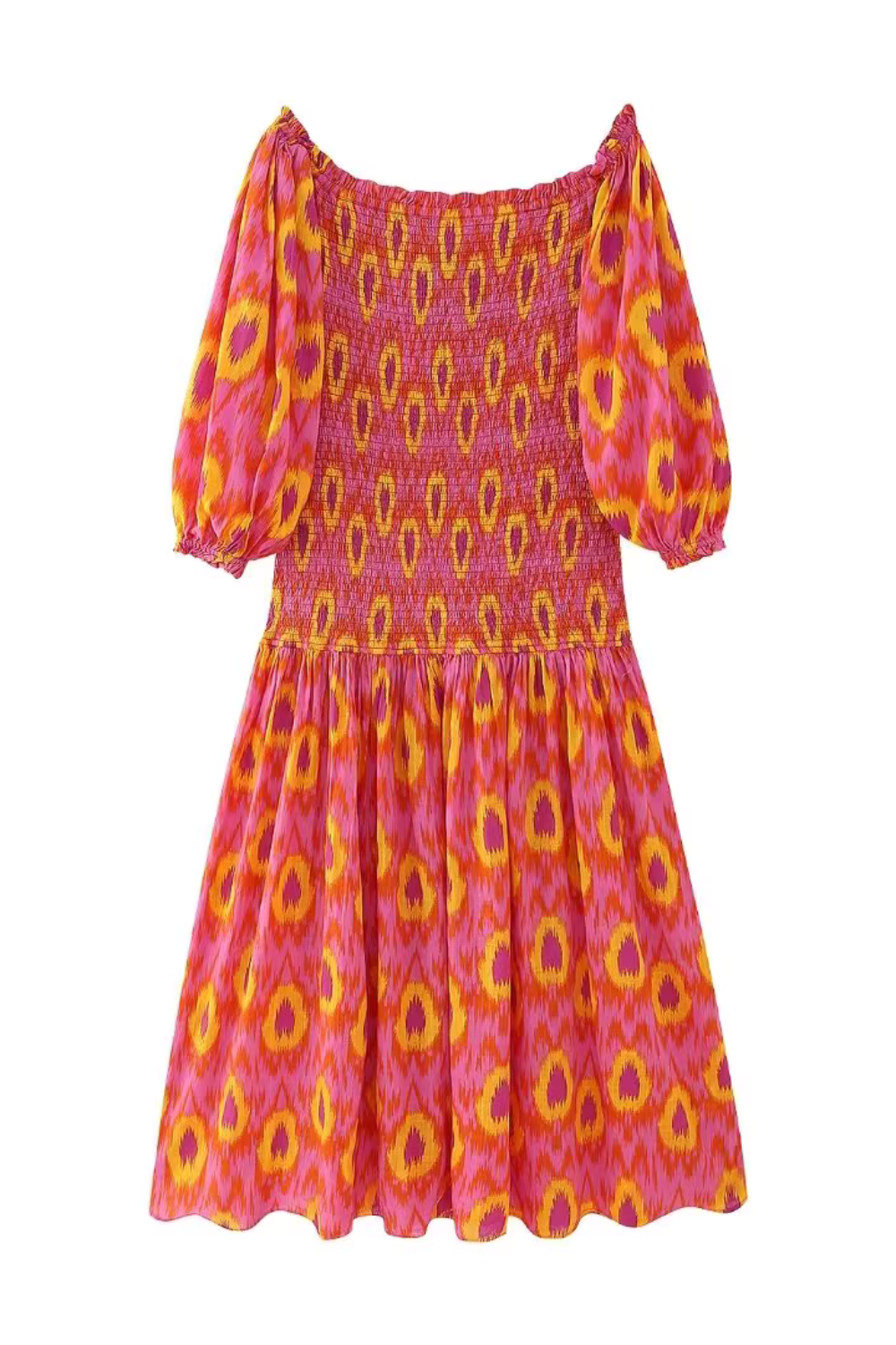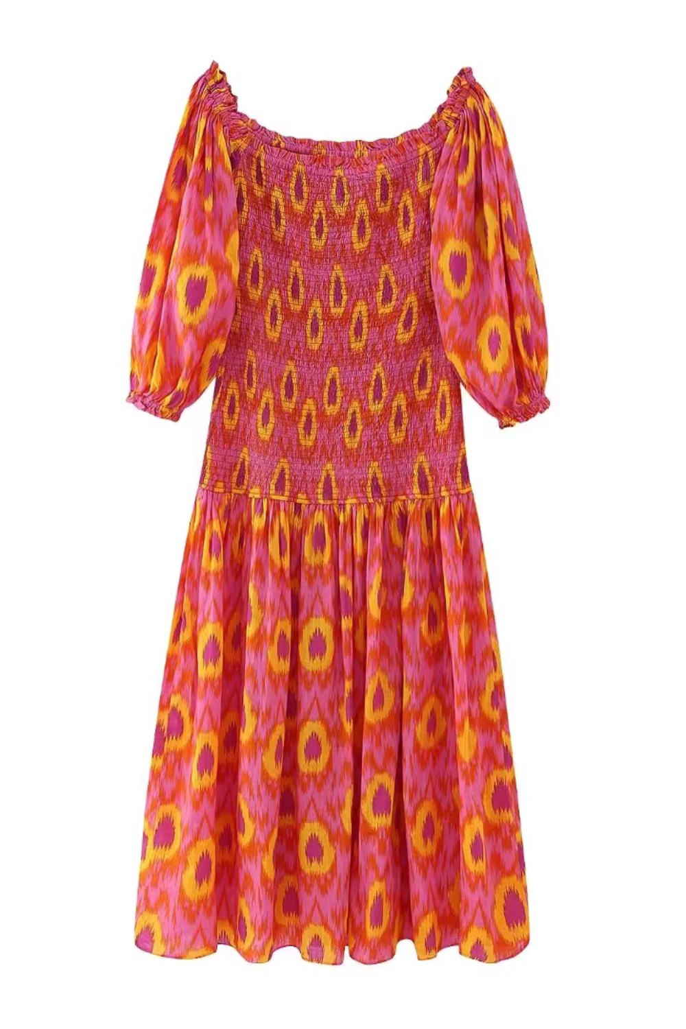 Goodnight Classicwhiteshirt ‘Sapphire’ Smocked Printed Midi Dress