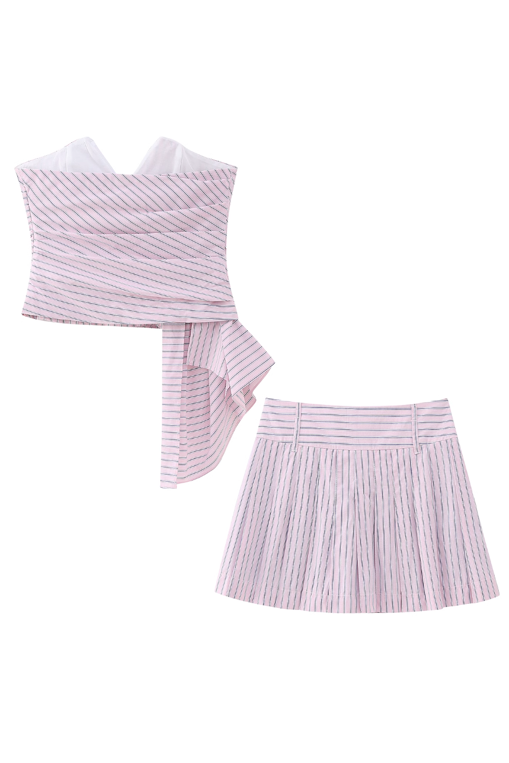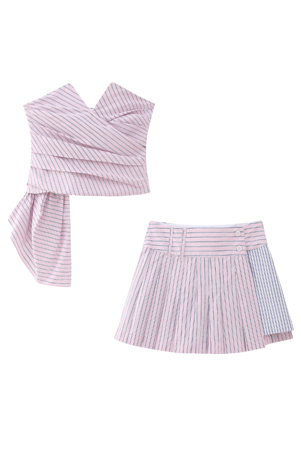 Goodnight Classicwhiteshirt ‘Sapphire’ Stripe Off-Shoulder Top & High Waist Skirt
